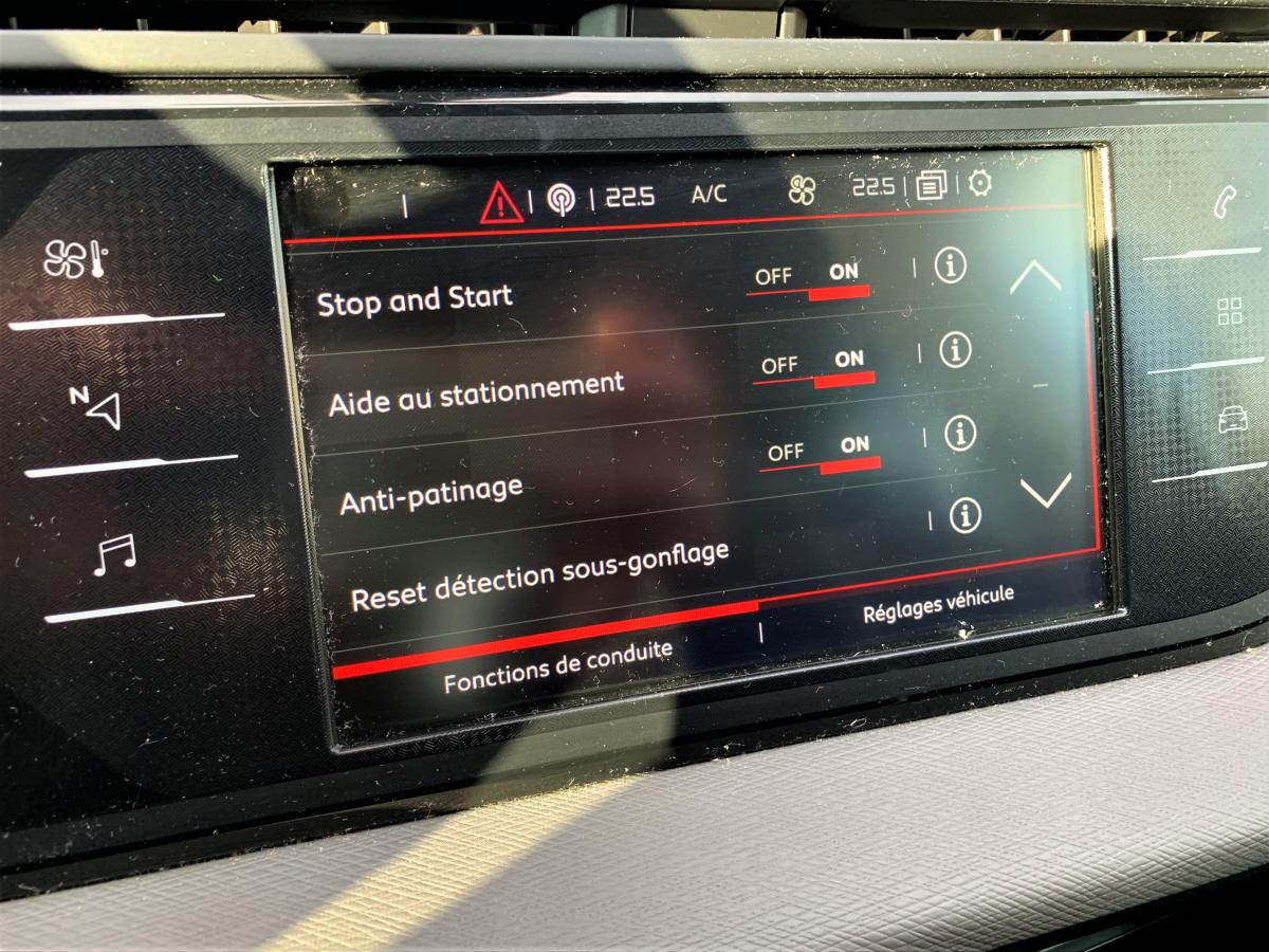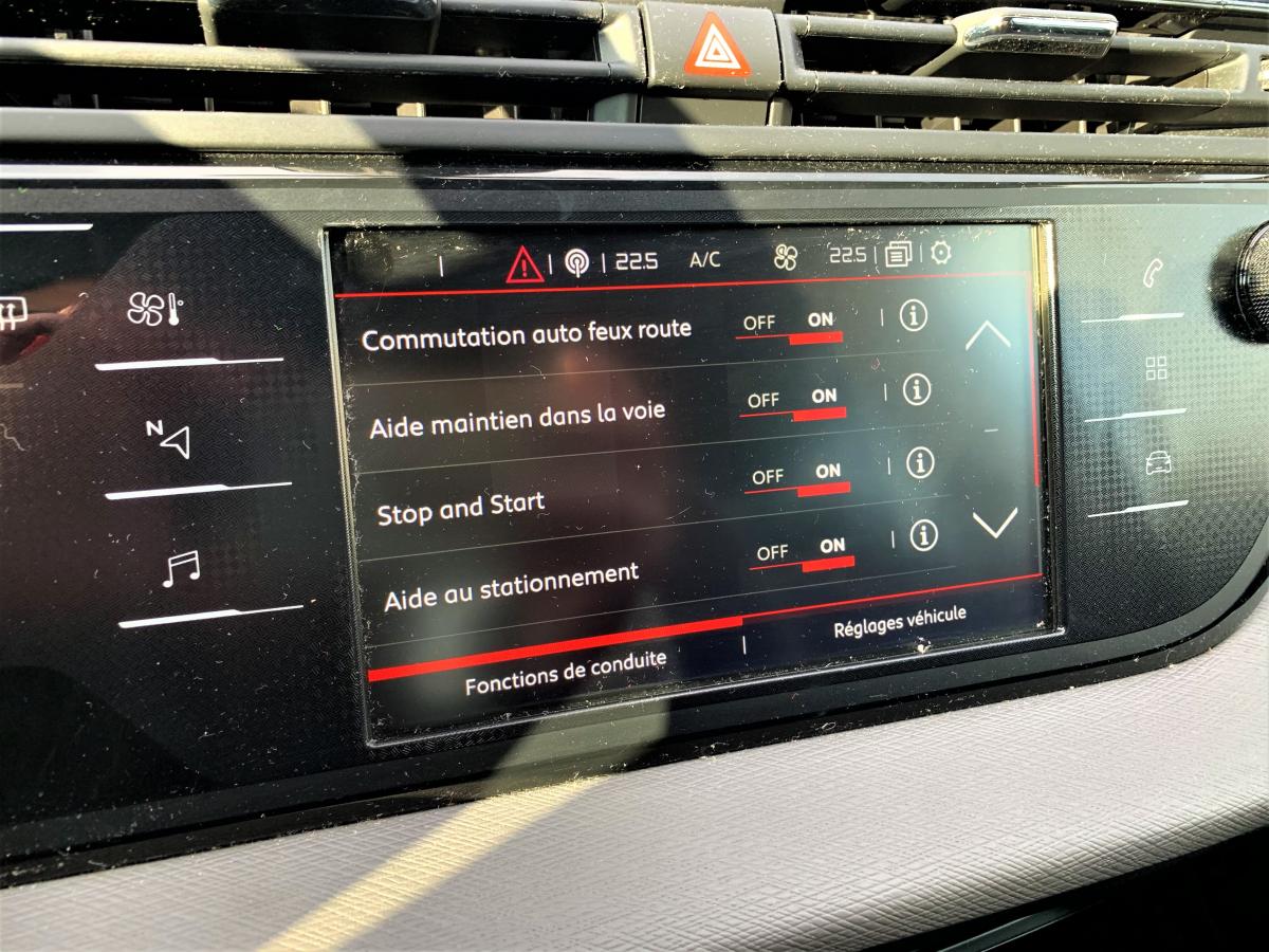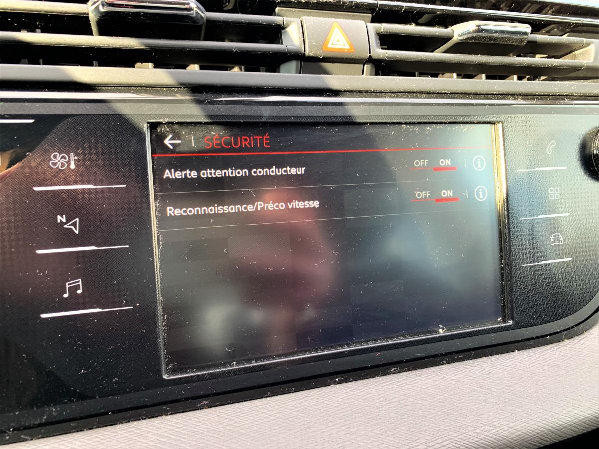 Accoudoirs centraux avant réglables en inclinaisonAide au démarrage en penteAide au stationnement avant et arrièreAlerte attention conducteurAlerte de franchissement Involontaire de ligneAllumage automatique des pharesCITROËN Connect Nav avec CITROËN Connect BoxClimatisation automatique bizoneCommutation automatique des feux de routeConnecting Box kit mains libres Bluetooth et prise USBContrôle dynamique de stabilité (ESP) et antipatinage (ASR)Coulissement des sièges arrière en rang 2Ecran panoramique 12" HDFrein de stationnement électrique automatiqueJantes alliage 16" NOTOS (quatre), pneumatiques 205/60 R16Lève-vitres électriques avant et arrière séquentiels et antipincementMirror ScreenProjecteurs antibrouillard sans éclairage statique d’intersectionProjecteurs halogèneRégulateur - limiteur de vitesse programmableRétroviseur intérieur électrochromatique (automatique jour/nuit)Rétroviseurs extérieurs dégivrants et réglables électriquementRétroviseurs extérieurs rabattables électriquement avec éclairage d'approche à LEDReconnaissance des panneaux de limitation de vitesseSystème audio et commandes au volantSystème de navigation sur tablette tactile 7"Tablette tactile 7" de contrôle des fonctionnalitésVitres latérales et lunette arrière surteintéesVolant cuir pleine fleurVolant réglable en hauteur et en profondeur