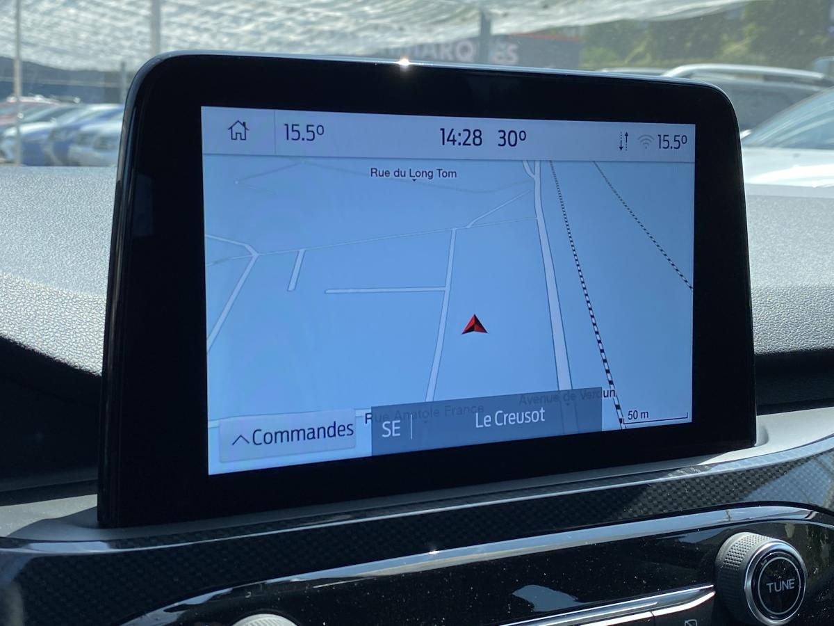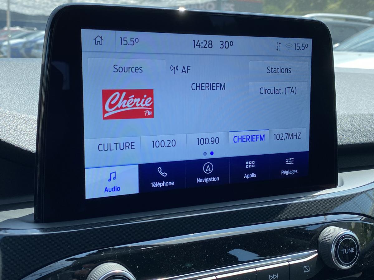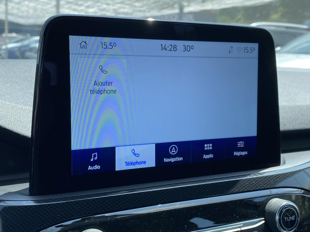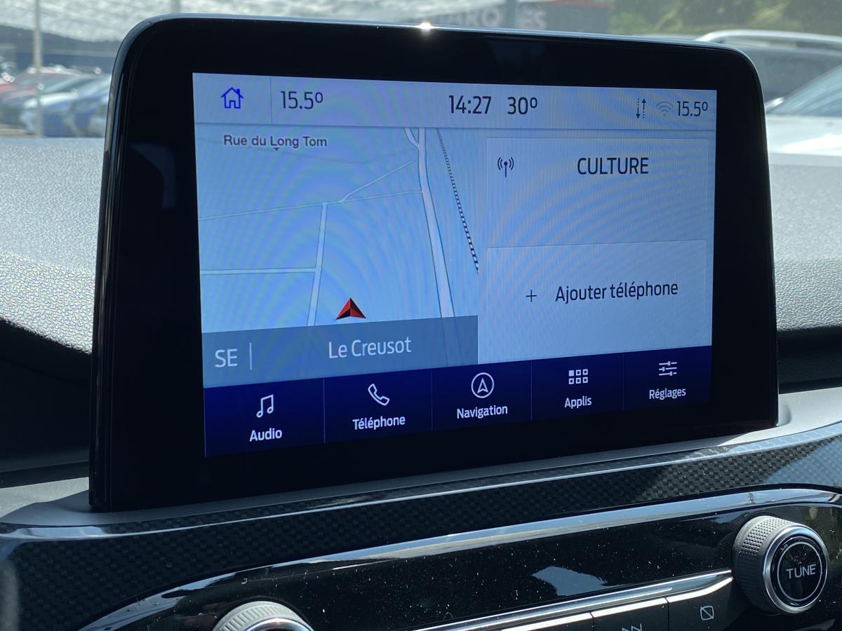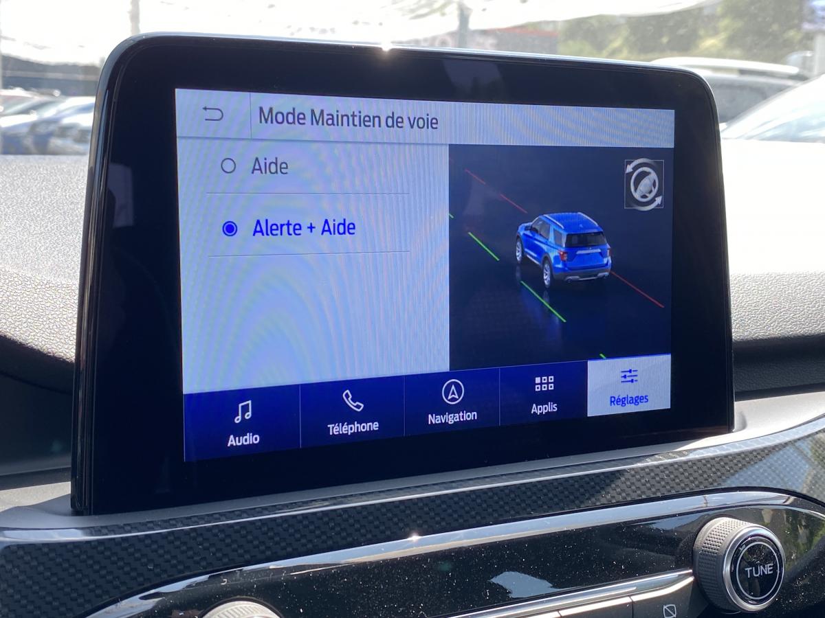 Aide au démarrage en côteAir conditionné à régulation automatique 2 zonesAlerte de franchissement de ligne avec maintien de voieAllumage automatique des essuie-glacesAllumage automatique des pharesCaméra AR 180°Chargeur de smartphone par inductionCombiné d'instrumentation numérique 12,3" avec EcomodeCorrecteur électronique de trajectoire ESPFeux arrière à LEDFeux de croisement à LEDFeux de jour à LEDFrein de stationnement électriqueJantes alliage 18" 5x2 branches finition ST-Line avec pneus 225/60 R18Kit carrosserie ST-LinePalettes au volantPlancher de coffre ajustableProjecteurs antibrouillard avant à LEDRégulateur de vitesseRétroviseur intérieur électrochromeRétroviseurs extérieurs rabattables électriquement et chauffantsRadars de stationnement avant et arrièreSiège conducteur réglable en hauteur avec soutien lombaire (8 positions)Siège passager réglable en hauteur avec soutien lombaire (8 positions)Système audio bi-tuner AM/FM Ford SYNC 3, avec écran tactile 8" DAB, commandes vocales, 2 ports USB, compatible AppLink, Apple CarPlay et Android auto, 6 haut-parleursSystème de Navigation Europe et points d'intérêt MichelinSystème de sécurité précollision avec détection des piétonsSystème Keyfree (ouverture et démarrage mains libres)Vitres avant et arrière électriquesVolant à méplat 3 branches Sensico ST-Line avec surpiqûres rouges