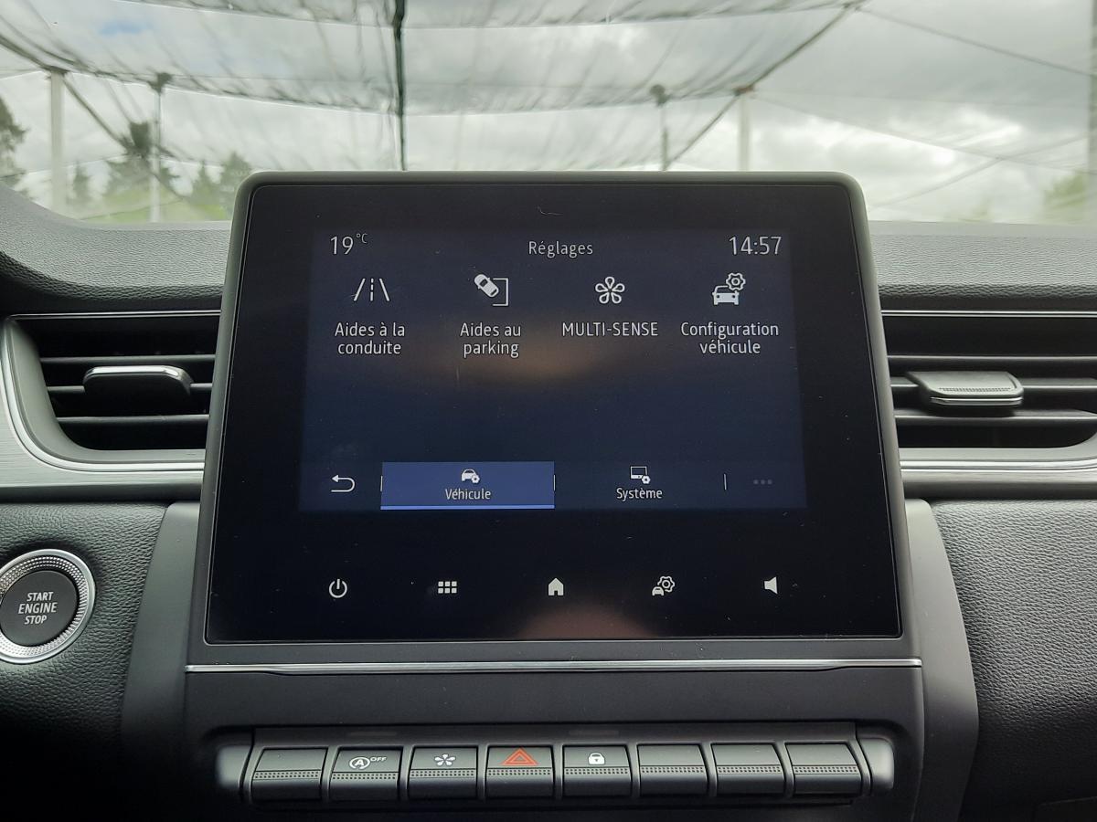 Accoudoir / console centrale avec rangementAide au démarrage en côteAide au stationnement arrièreAlerte de survitesse avec reconnaissance des panneaux de signalisationAllumage automatique des projecteurs en fonction de la luminositéAssistance au maintien de voieCapteurs de pluieCarte Renault mains-libresClimatisation automatiqueCoiffe supérieure de planche de bord mousséeCondamnation électrique centralisée des portes avec télécommande et condamnation des portes en roulantEASY LINK 7” et navigationEclairage avant et arrière Full LED Pure Vision avec signature lumineuse en forme de « C »Eclairage intelligent (commutation automatique feux de croisement/route)ESC (contrôle électronique de la trajectoire)Frein de parking électrique avec fonction Auto-HoldJantes alliage 18” Pasadena diamantées gris erbéKit gonflage de réparationLève-vitre électriques à impulsionPeinture bi-ton (toit, coques de rétroviseurs, montants de pare-brise)Plancher de coffre modulable 2 positionsRégulateur et limiteur de vitesseRétroviseur intérieur électrochromatique (automatique jour/nuit)Rétroviseurs extérieurs dégivrants, réglables et rabattables électriquementRenault MULTI-SENSE, personnalisation des 3 modes de conduites (MY SENSE, ECO, SPORT) et des 8 ambiances lumineuses intérieuresSellerie TEP / tissu avec jonc grisSiège conducteur réglable en hauteurSystème de fixation ISOFIX aux places latérales arrière et passager avantTableau de bord numérique 7” personnalisable