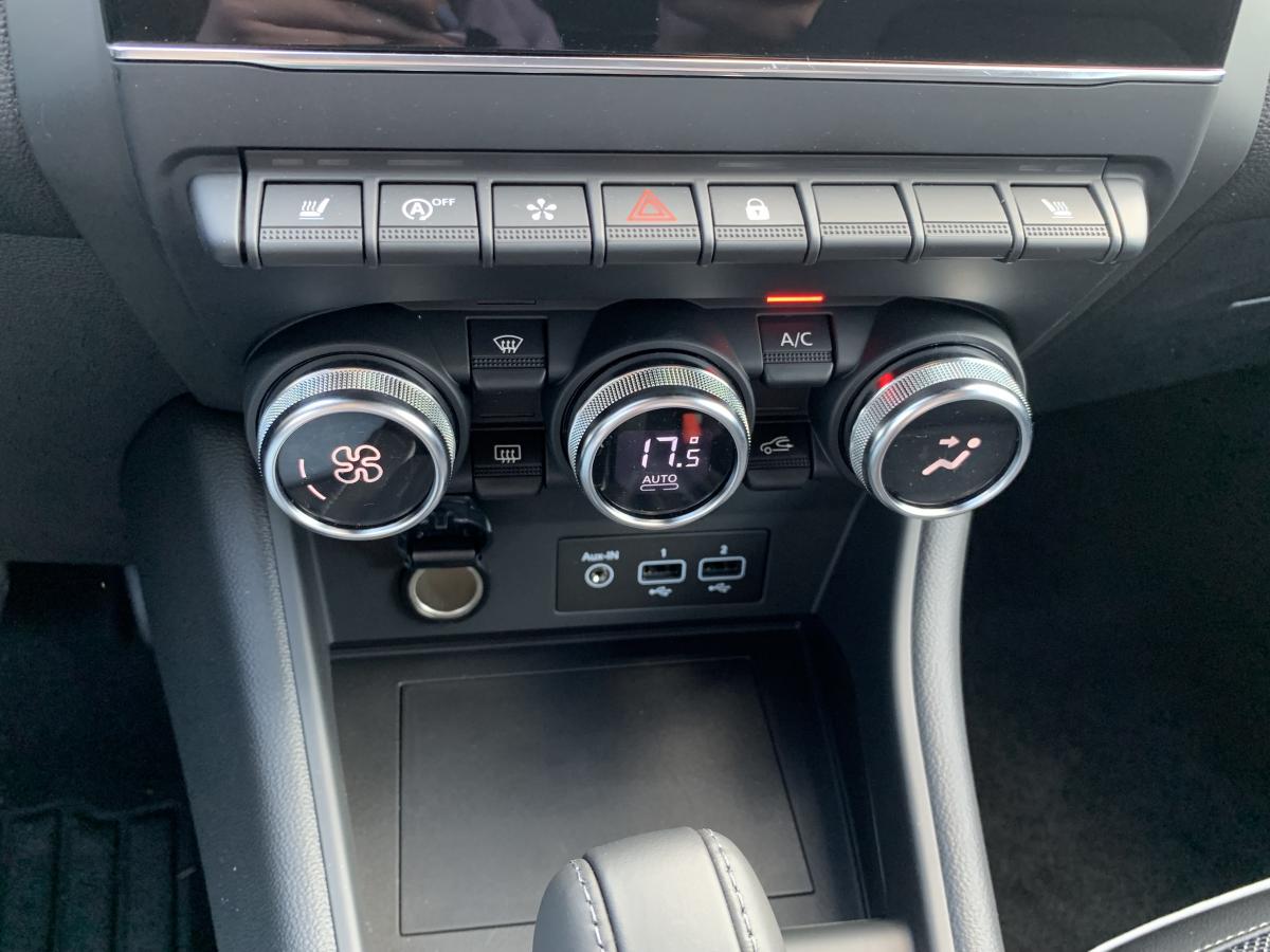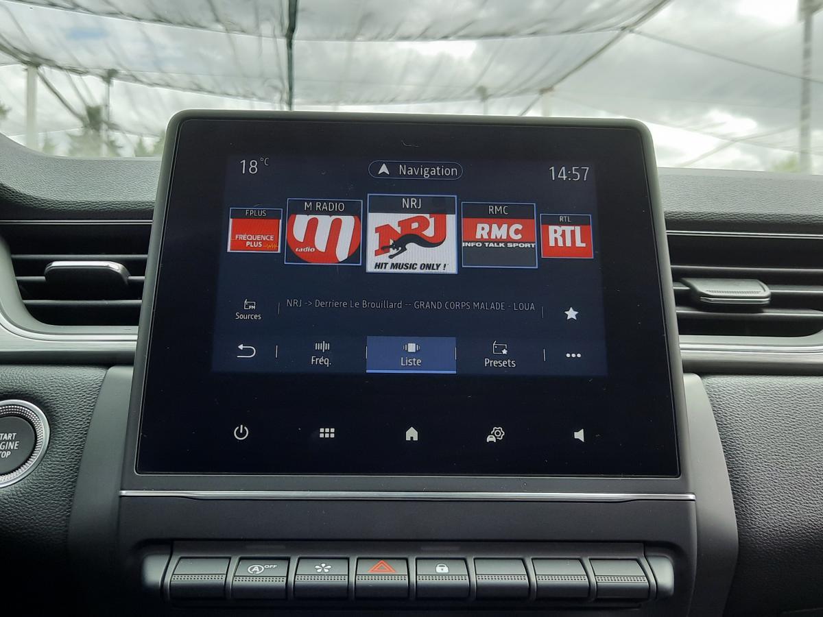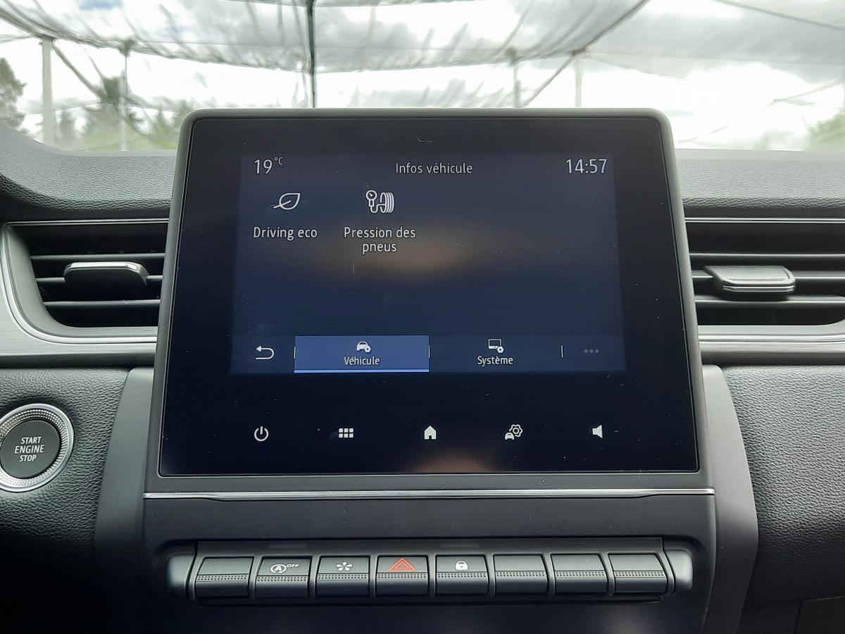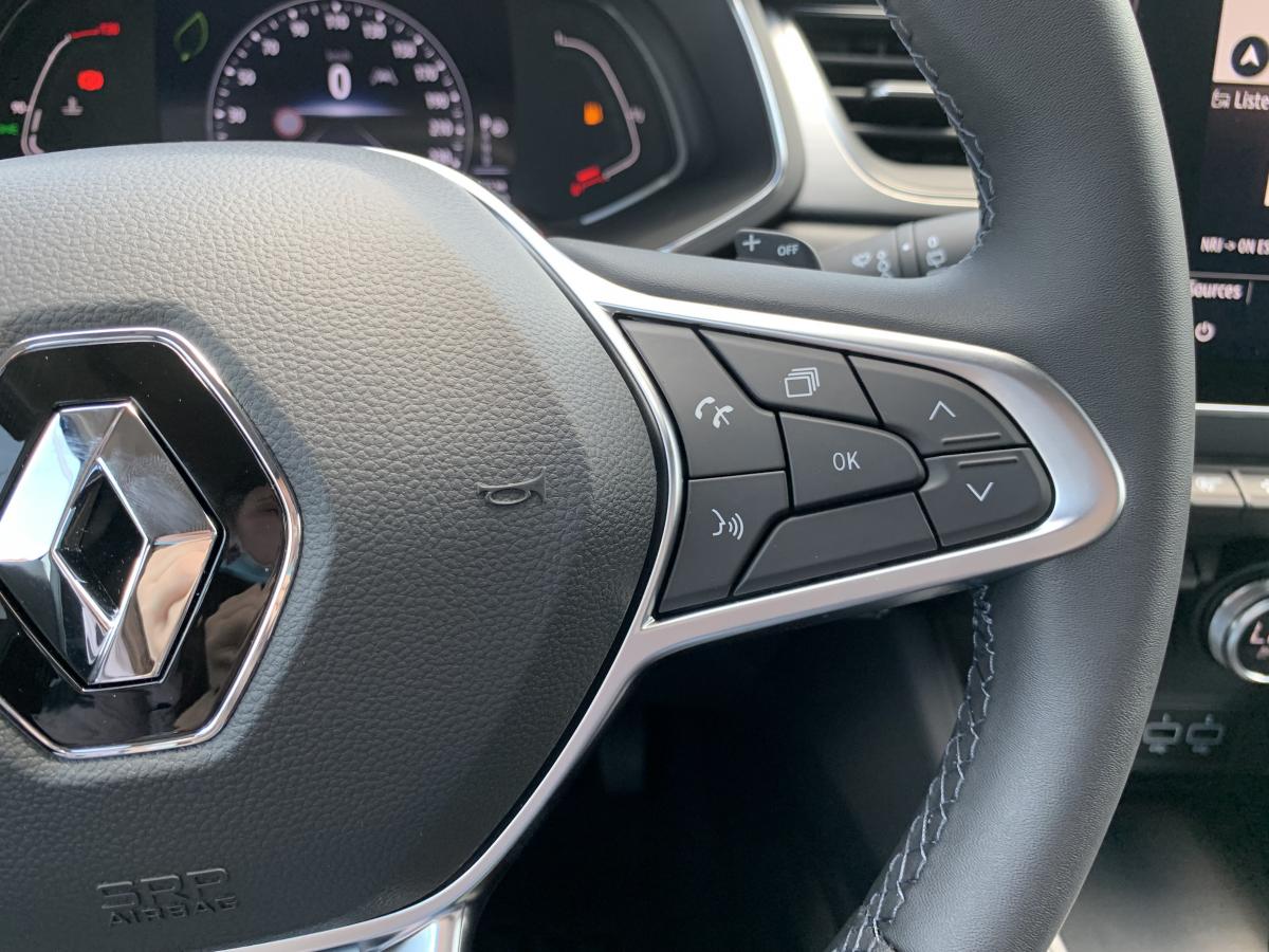 Accoudoir / console centrale avec rangementAide au démarrage en côteAide au stationnement arrièreAlerte de survitesse avec reconnaissance des panneaux de signalisationAllumage automatique des projecteurs en fonction de la luminositéAssistance au maintien de voieCapteurs de pluieCarte Renault mains-libresClimatisation automatiqueCoiffe supérieure de planche de bord mousséeCondamnation électrique centralisée des portes avec télécommande et condamnation des portes en roulantEASY LINK 7” et navigationEclairage avant et arrière Full LED Pure Vision avec signature lumineuse en forme de « C »Eclairage intelligent (commutation automatique feux de croisement/route)ESC (contrôle électronique de la trajectoire)Frein de parking électrique avec fonction Auto-HoldJantes alliage 18” Pasadena diamantées gris erbéKit gonflage de réparationPeinture bi-ton (toit, coques de rétroviseurs, montants de pare-brise)Plancher de coffre modulable 2 positionsRégulateur et limiteur de vitesseRétroviseur intérieur électrochromatique (automatique jour/nuit)Rétroviseurs extérieurs dégivrants, réglables et rabattables électriquementRenault MULTI-SENSE, personnalisation des 3 modes de conduites (MY SENSE, ECO, SPORT) et des 8 ambiances lumineuses intérieuresSellerie TEP / tissu avec jonc grisSiège conducteur réglable en hauteurSystème de fixation ISOFIX aux places latérales arrière et passager avantTableau de bord numérique 7” personnalisable