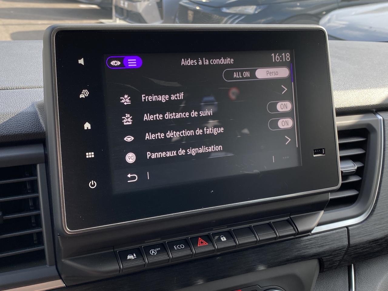 Siège passager avec accoudoir Aide au parking avant et latéral (Pack City) Avertisseur d'angles morts (Pack City) Carte Main-Libre (Pack Techno) Combiné instrumentation numérique 7 (Pack Techno) ... ... Miroir Wide View (Pack City) Photos non contractuelles Projecteurs antibrouillard (Pack Visibilité) Rétroviseurs extérieurs réglables et rabattables... VOI Volant en textile enduit grainé (Pack Techno) Chargeur de smartphone par induction Climatisation automatique EASY LINK avec écran 8" et Navigation Jantes alliage 17'' Pack City Pack Look Extra Pack Rangements Pack Techno Pack Visibilité Peinture Gris Comète Porte latérale gauche coulissante vitre ouvrante Roue de secours normale