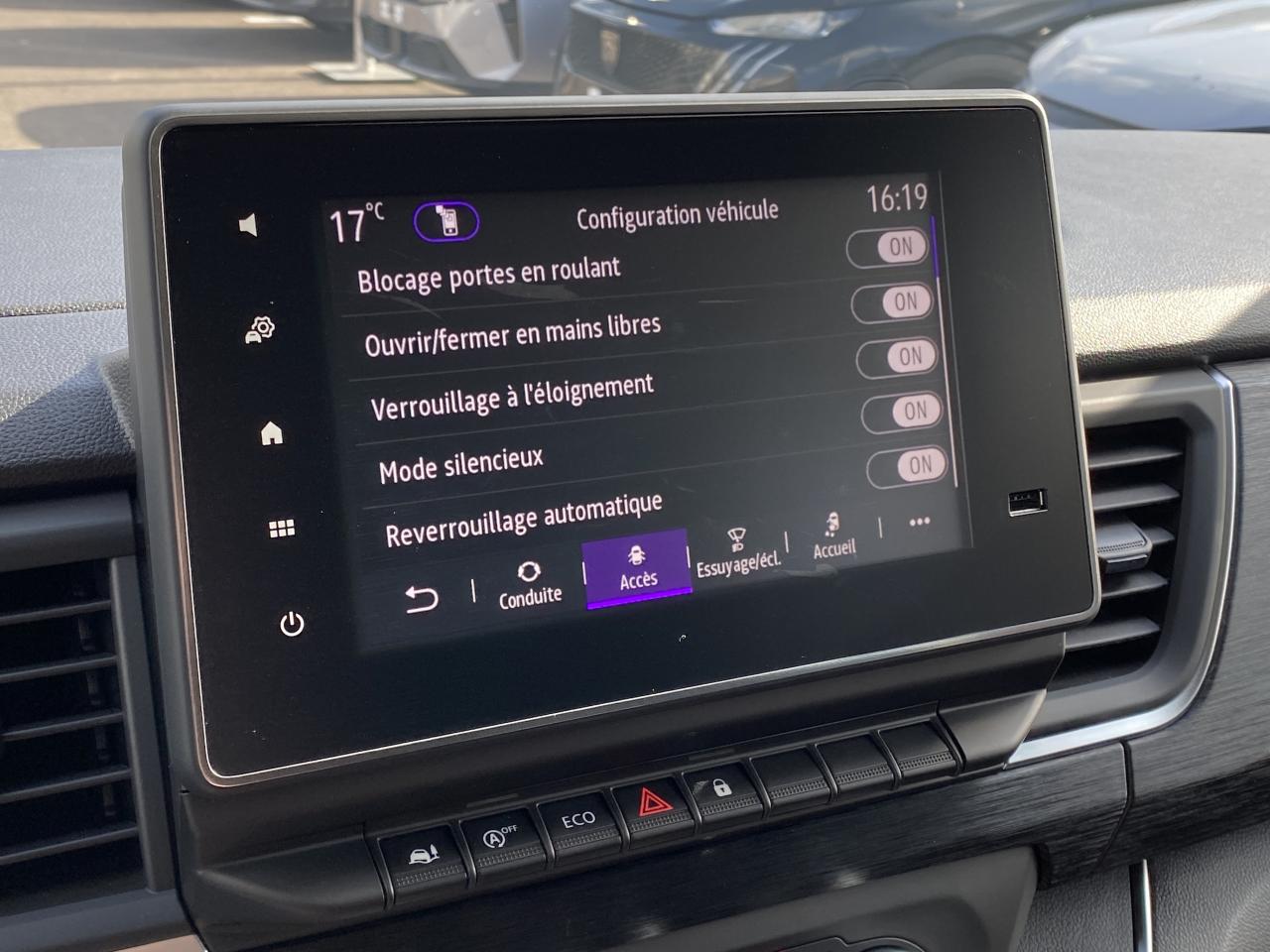 Siège passager avec accoudoir Aide au parking avant et latéral (Pack City) Avertisseur d'angles morts (Pack City) Carte Main-Libre (Pack Techno) Combiné instrumentation numérique 7 (Pack Techno) ... ... Miroir Wide View (Pack City) Photos non contractuelles Projecteurs antibrouillard (Pack Visibilité) Rétroviseurs extérieurs réglables et rabattables... VOI Volant en textile enduit grainé (Pack Techno) Chargeur de smartphone par induction Climatisation automatique EASY LINK avec écran 8" et Navigation Jantes alliage 17'' Pack City Pack Look Extra Pack Rangements Pack Techno Pack Visibilité Peinture Gris Highland Porte latérale gauche coulissante vitre ouvrante Roue de secours normale