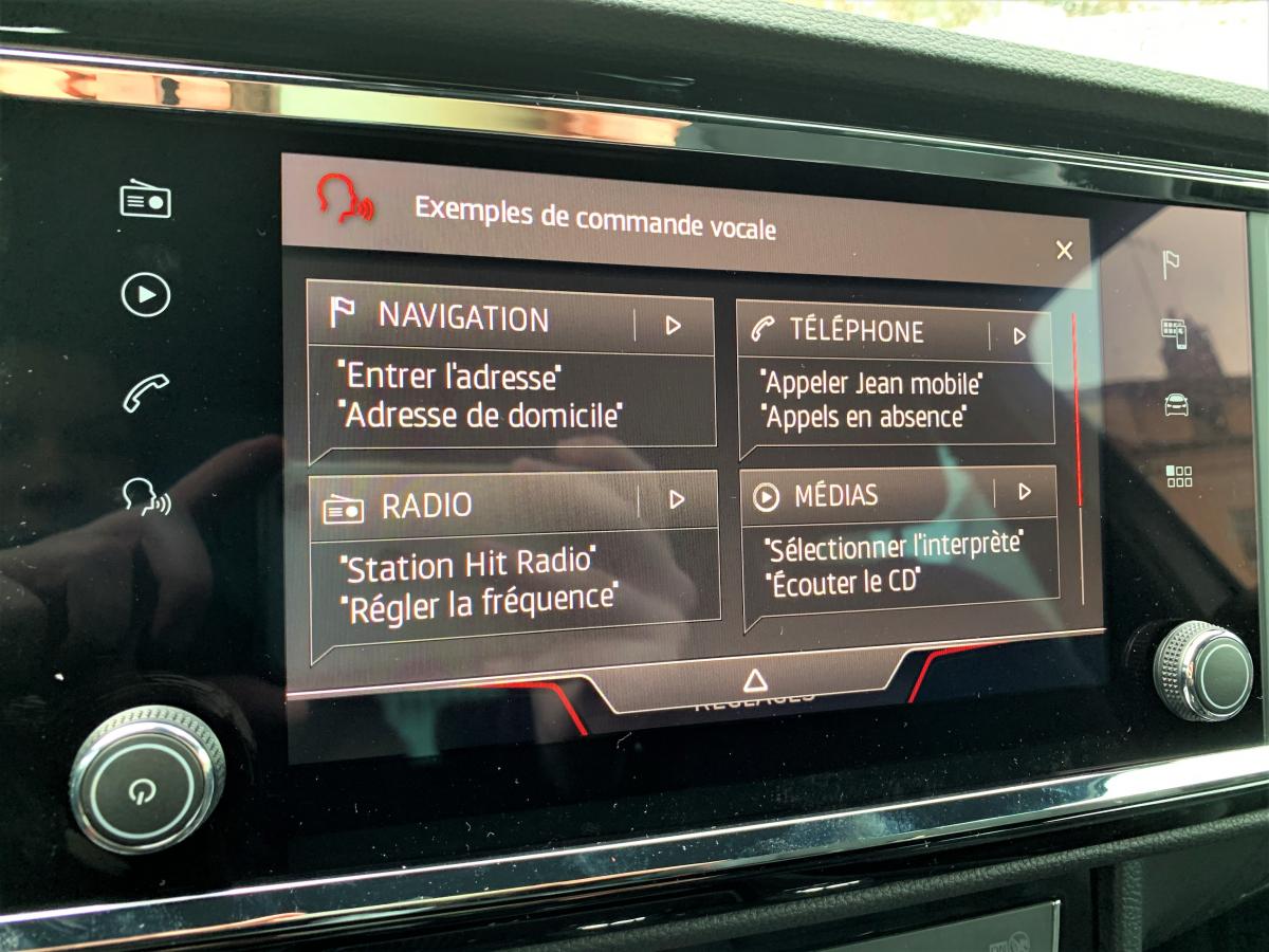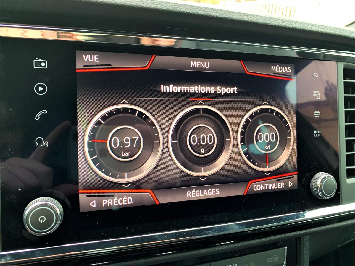 Accoudoir central arrièreAccoudoir central avant ajustable avec rangementAide au démarrage en côte (HHC)Banquette arrière rabattable en 2 parties asymétriquesClimatisation automatique Climatronic bi-zone avec système Pure AirConnectivity Box avec chargeur à inductionDétecteur de pluie et de luminositéDigital Cockpit : combiné d’instruments digital haute résolution couleur de 10,25"Frein de parking électriqueFull Link (MirrorLink + Android Auto + Apple CarPlay)GPS Europe avec écran tactile 8'',Bluetooth, lecteur CD/MP3, prise USB, Aux-In et 2 lecteurs de carte SDJantes alliage 19’’ FR MachinedMolette Driving Experience avec direction progressivePalettes de changement de vitesseProjecteurs antibrouillard avant avec fonction d'éclairage d'angle Cornering lightProjecteurs Full LEDRétroviseur intérieur électrochrome sans contourRétroviseurs extérieurs dégivrants rabattables électriquementRails de toit et entourage de vitre noirsSellerie en suédine noire / textile noir Nora FR / similicuir noir TitaneSystème de surveillance périmétrique "Front Assist" avec freinage d'urgence en villeVitres arrière et lunette arrière surteintées à 65%Vitres avant et arrière électriques